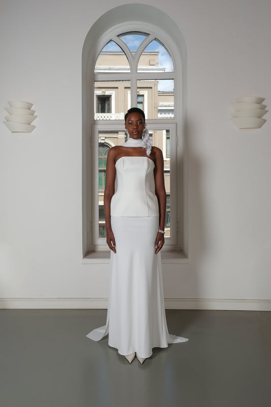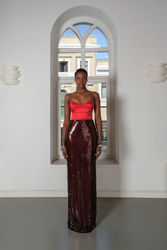 Sadie - Strapless Long Dress with Draped Satin and Sequin Mix