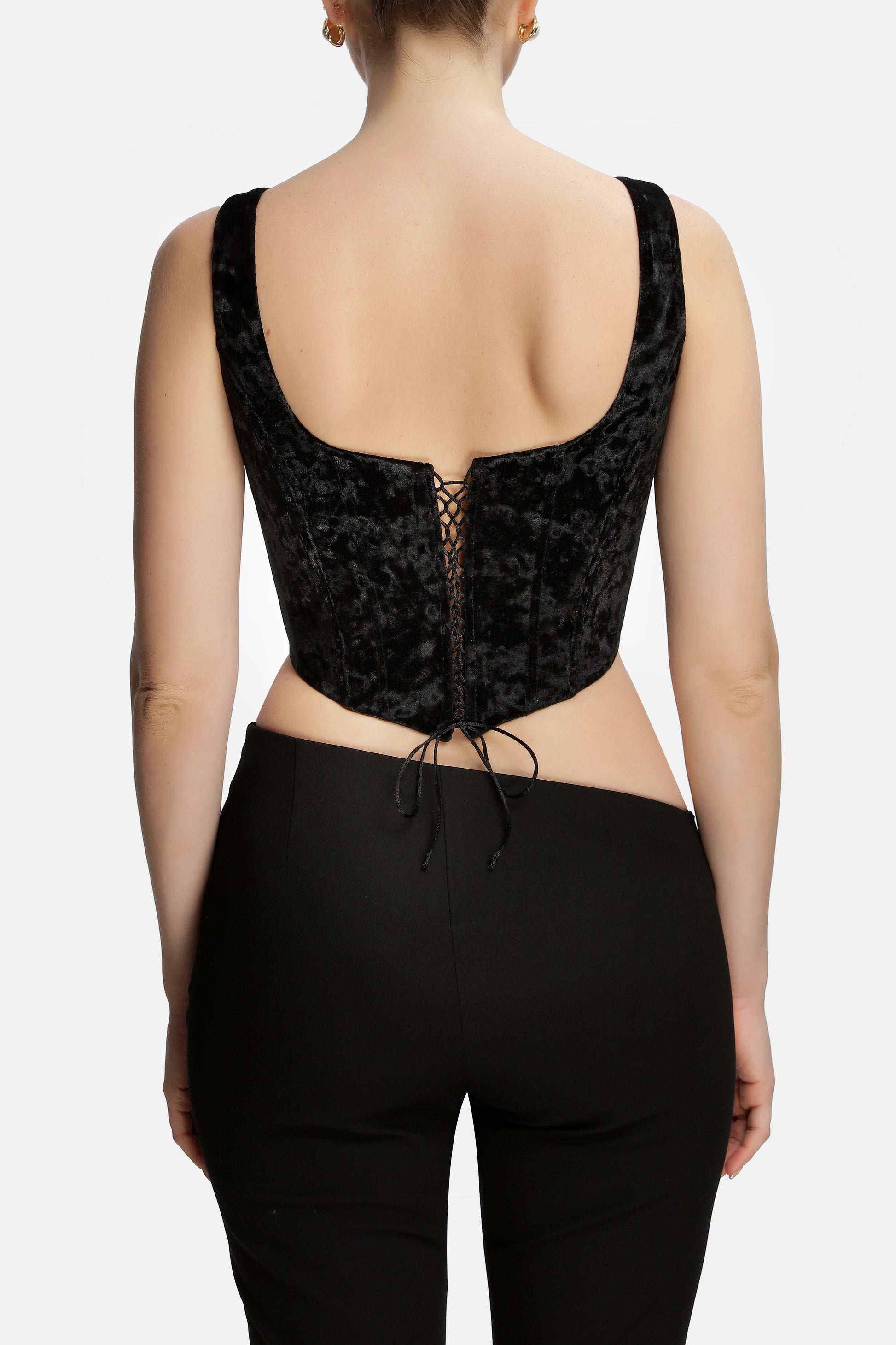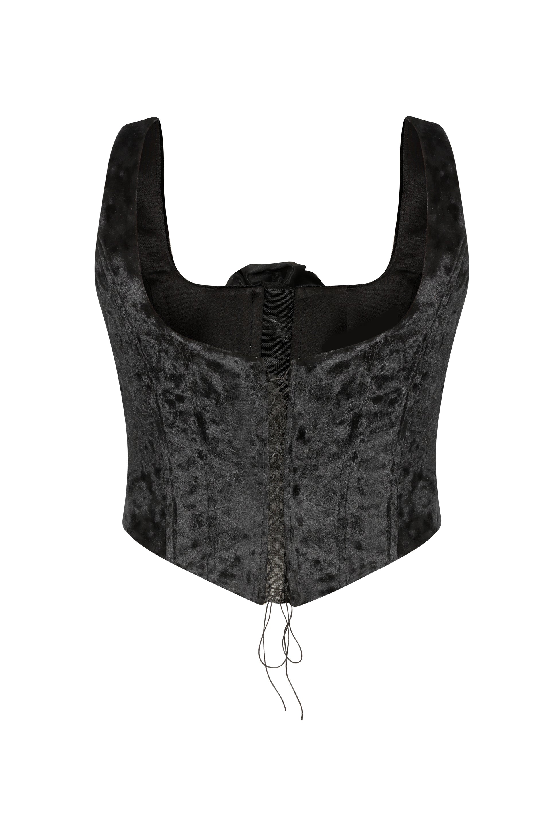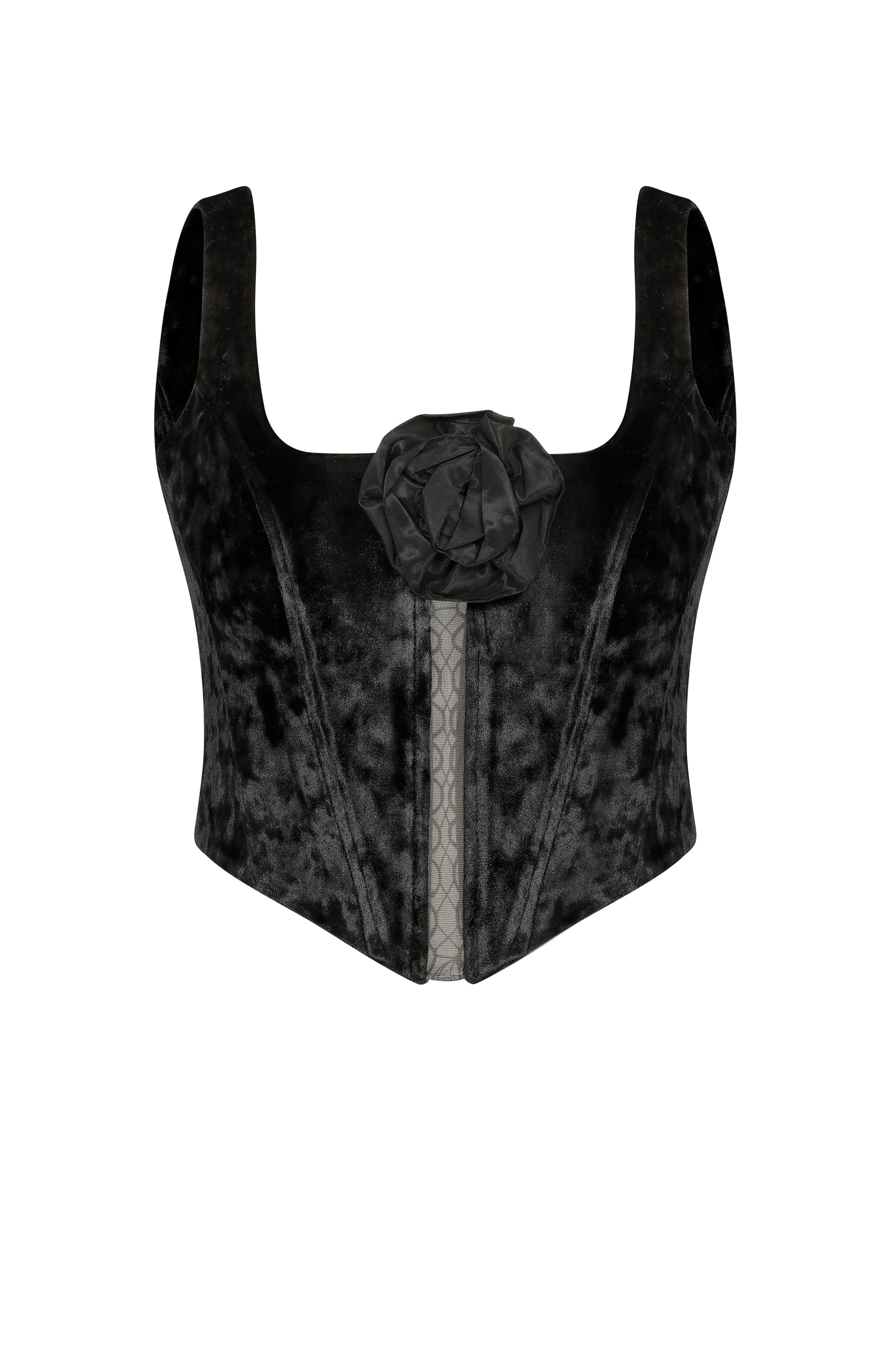 Black Velvet Corset with Tulle Detailed and Rose Applique