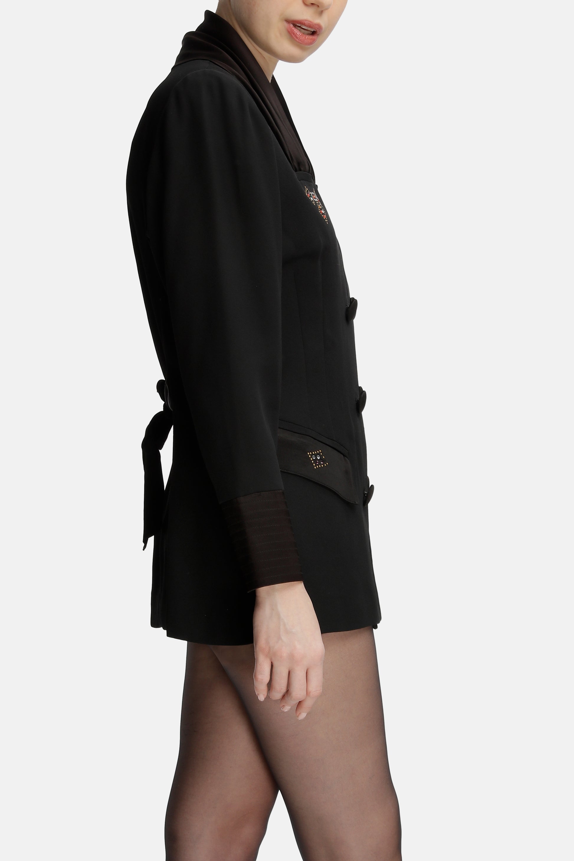 Laura - Double-breasted Satin-trimmed Crepe Blazer